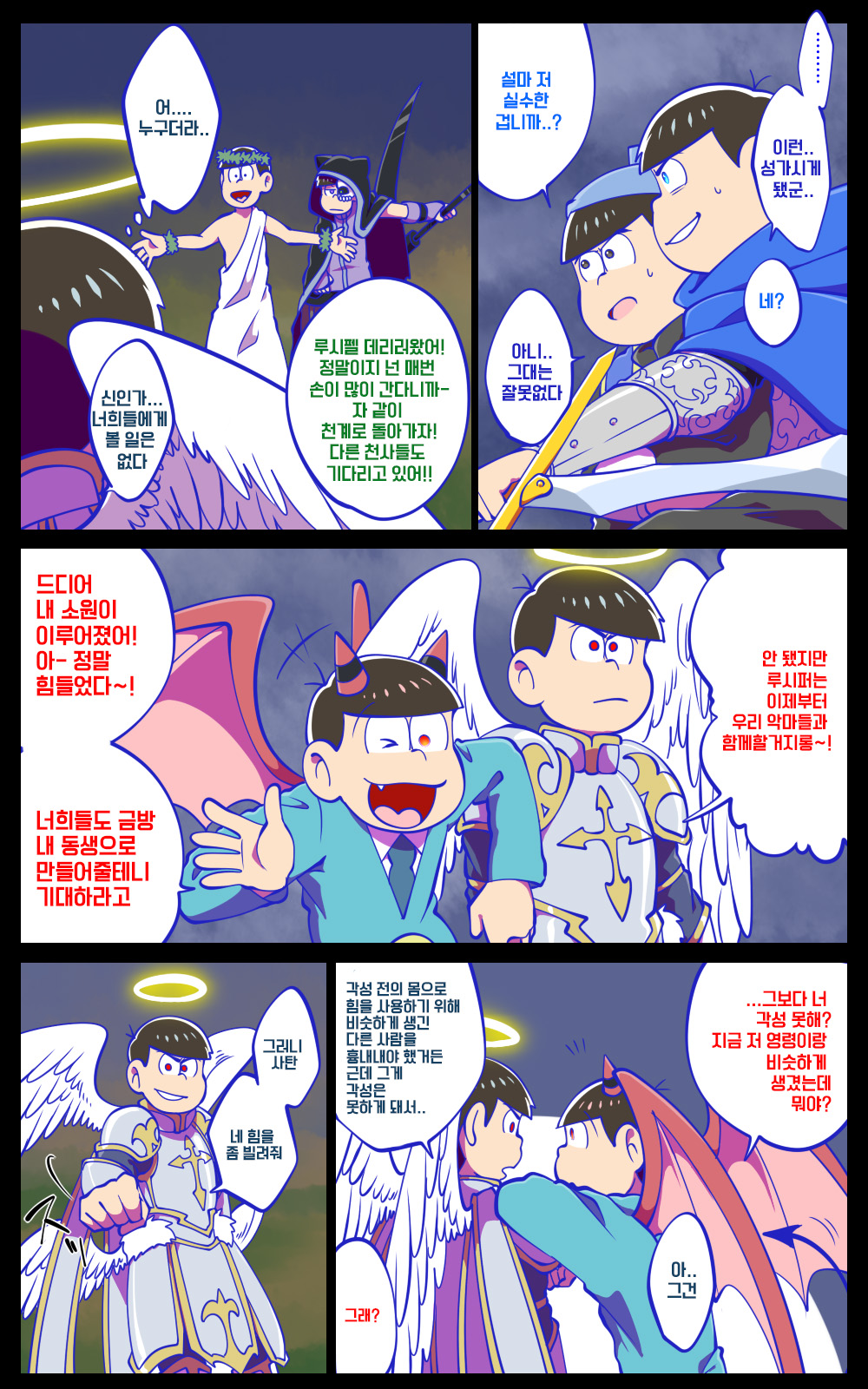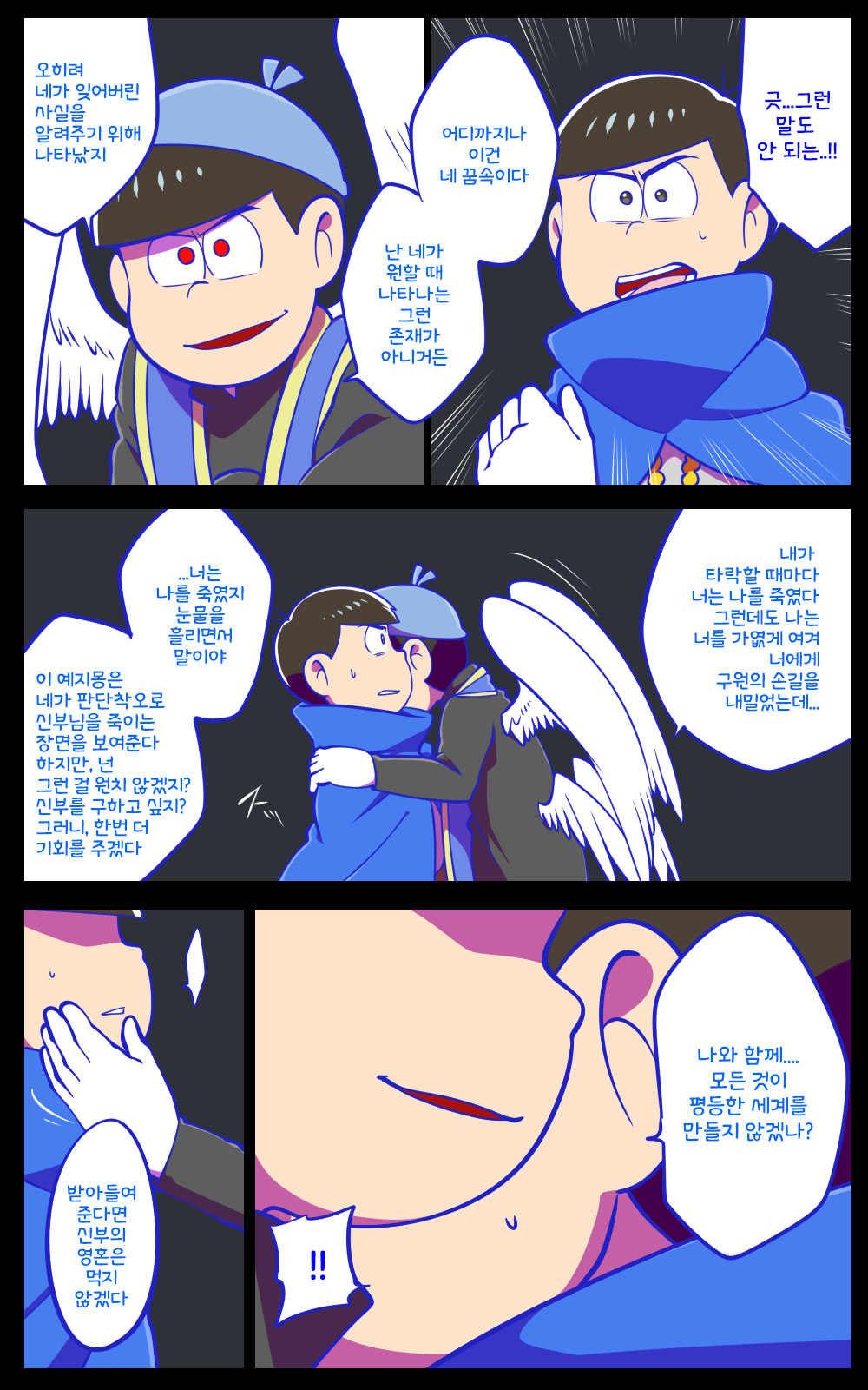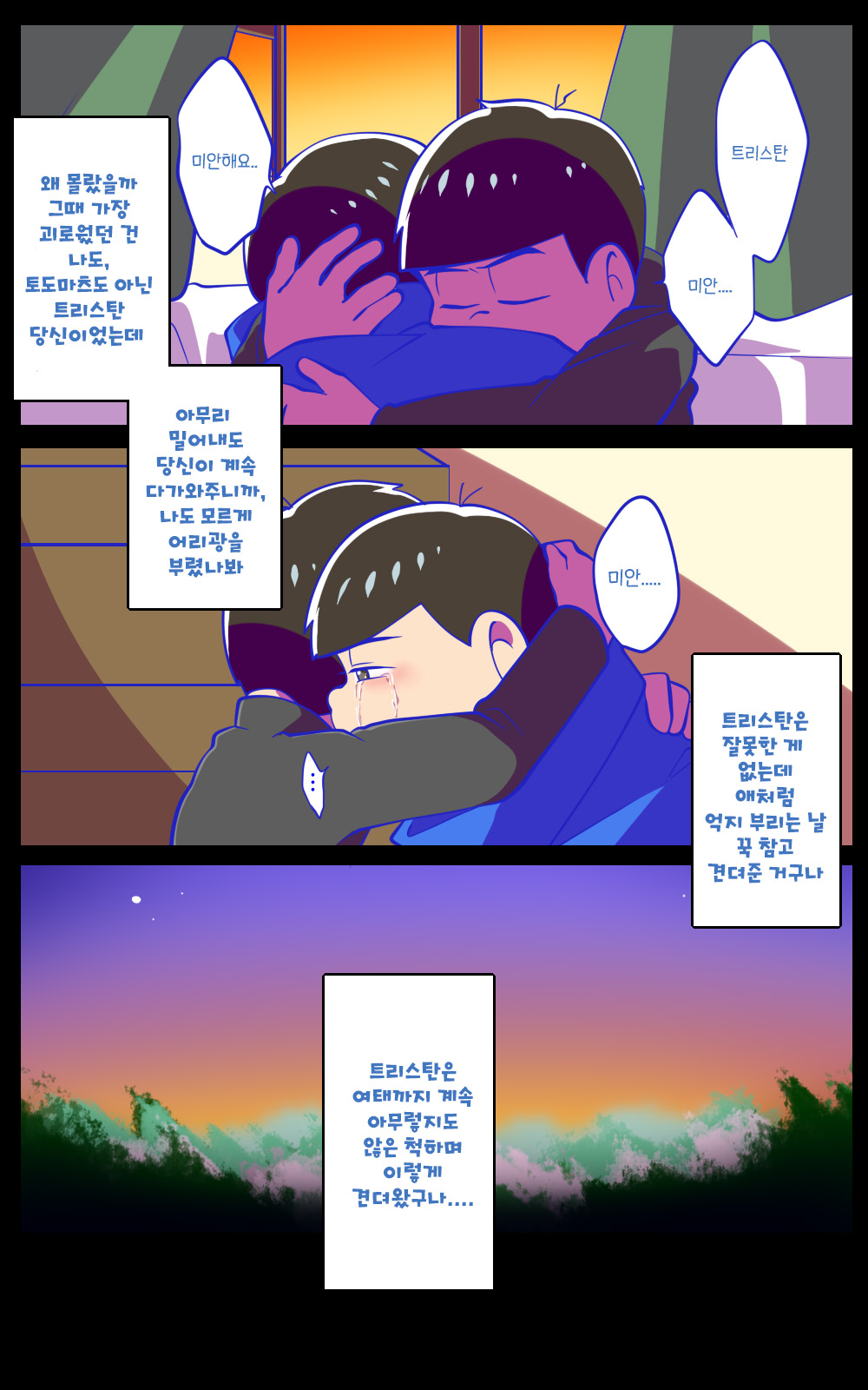 미안. 고개를 푹 숙인 채 울먹이며 사과하는 토도마츠를 쥬시마츠가 꼭 끌어안는다.