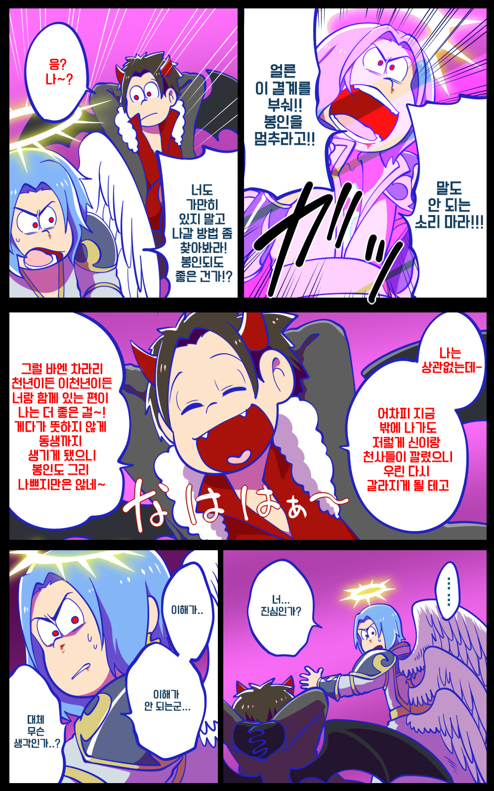 사랑하는 방법이 그것뿐인 걸까. 벽을 깨보려 했지만, 어느새 벽은 더욱 멀어져 있었다. 바로 옆에 있으면서도, 멀게만 느껴졌다. 무작정 다가가면 벽 너머의 쵸로마츠가 아지랑이처럼 사라져버릴 것만 같아, 그 한 발자국을 내딛지 못했다. 그것이 오소마츠는 너무도 답답했다.